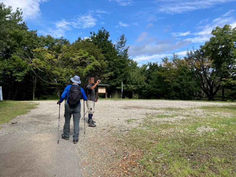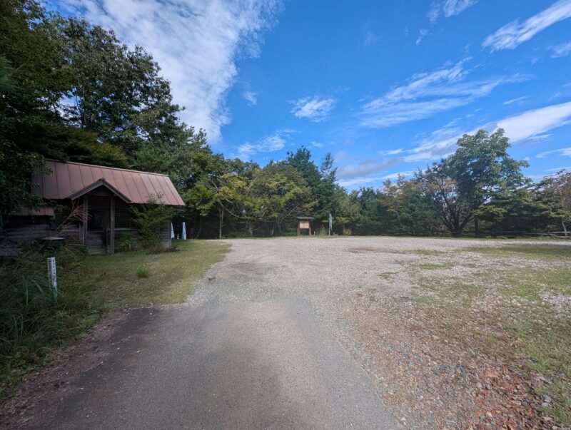 めちゃくちゃ広い駐車場です。トイレもあるので女性には安心ですね。左の建物奥からが登山道です。