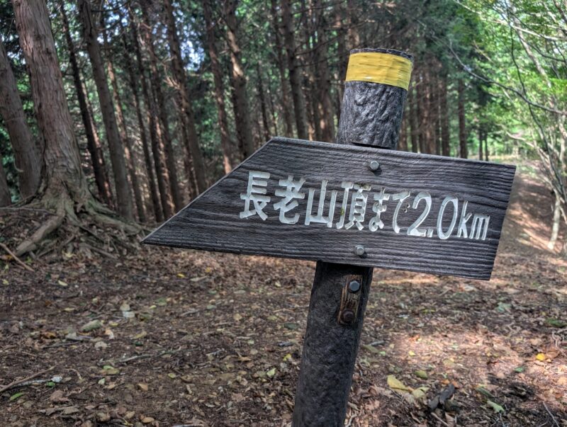 山頂まで2㎞の標識(少し先に東屋あり)