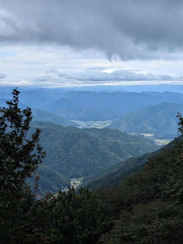 山頂からの眺めです。地図を見ると眼下に見えるのは美山町だそうだ。