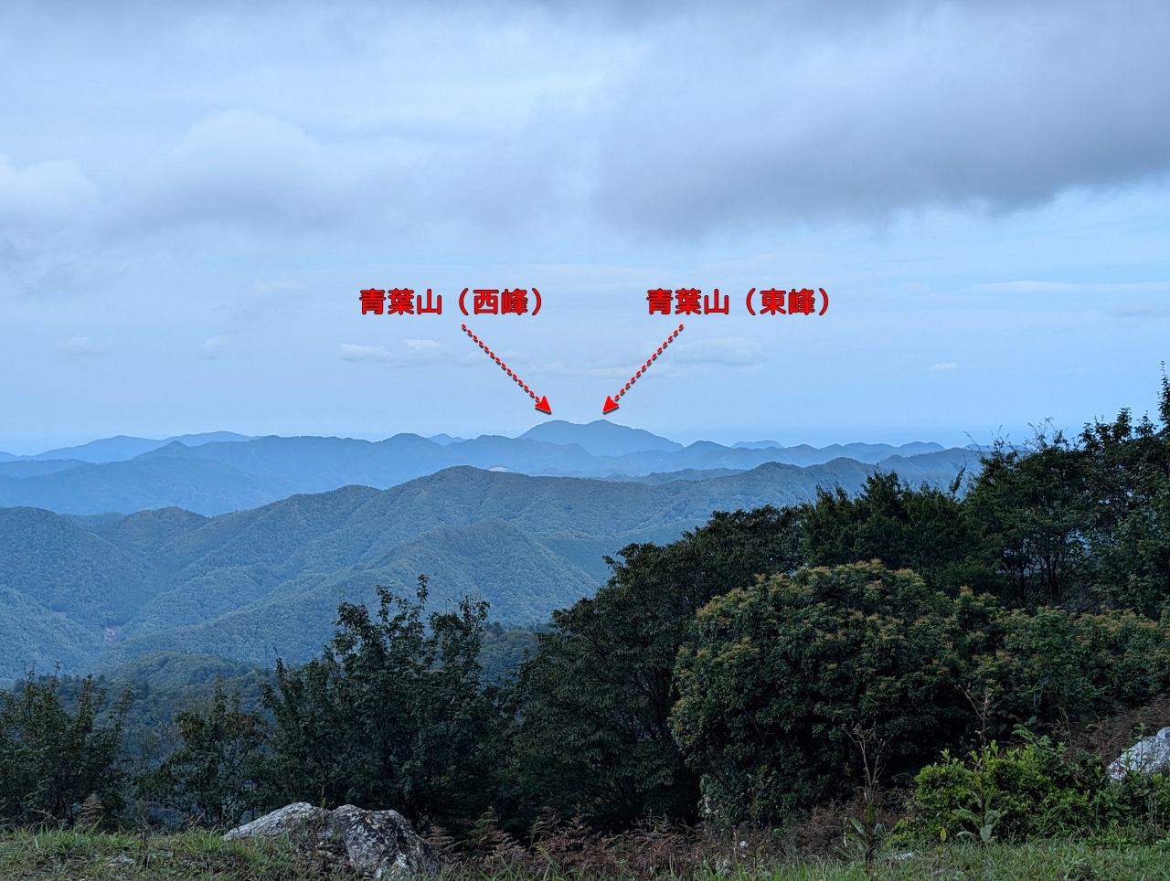 北方向を見ると、日本海も見えてます。正面にはちょうど2年前にryoさんと登った「青葉山」も見えました。