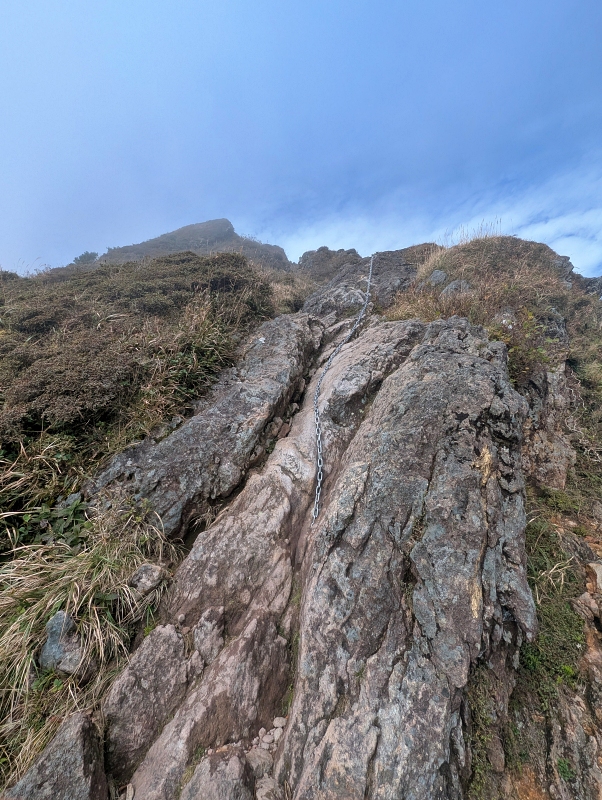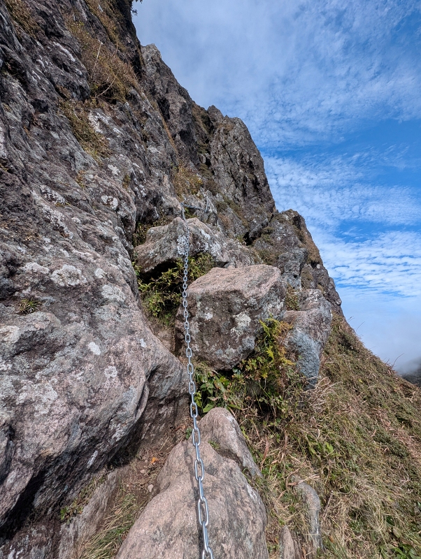いきなり鎖場が出てきます。ホールドするところも多くて登りやすいです。