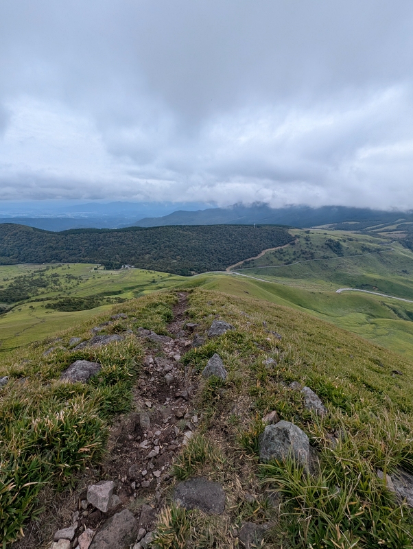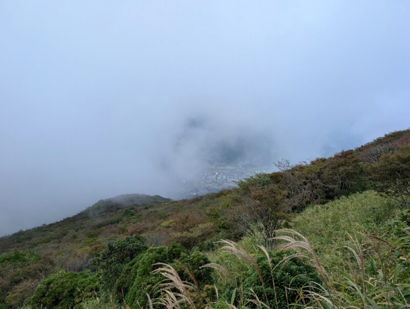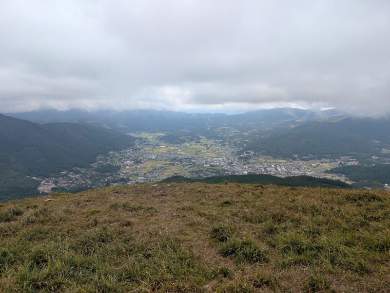 湯布院の街並みが見えてます。しばらく寝転んで休憩してたらポツポツ雨が落ちてきたので、急いで下山します。