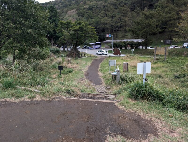 かなりの台数を停めれる駐車場。綺麗なトイレ、水道もあります。自販機はなし。自販機はここから1.5kmほど下った「狭霧台」にあります。