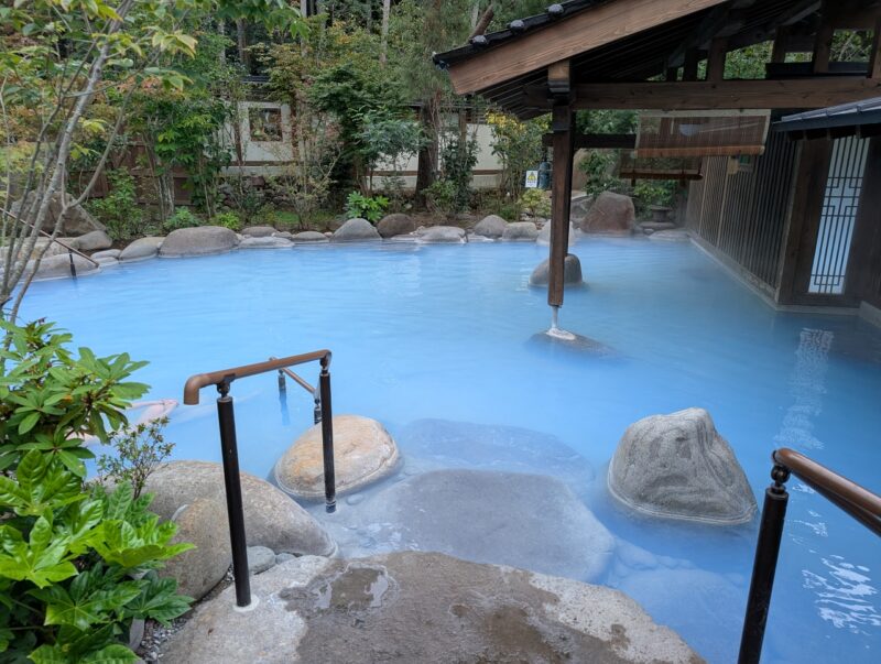 源泉かけ流しで、レビューを見るとお湯が激熱で入れないって書き込みが多数。どれだけ熱いのか・・・熱すぎては入れなかったらどうしようかと思いました。確かに熱いですが、気合い入れて入ってしまえば、どーってことない。雨に濡れた体を芯から温めてくれました。