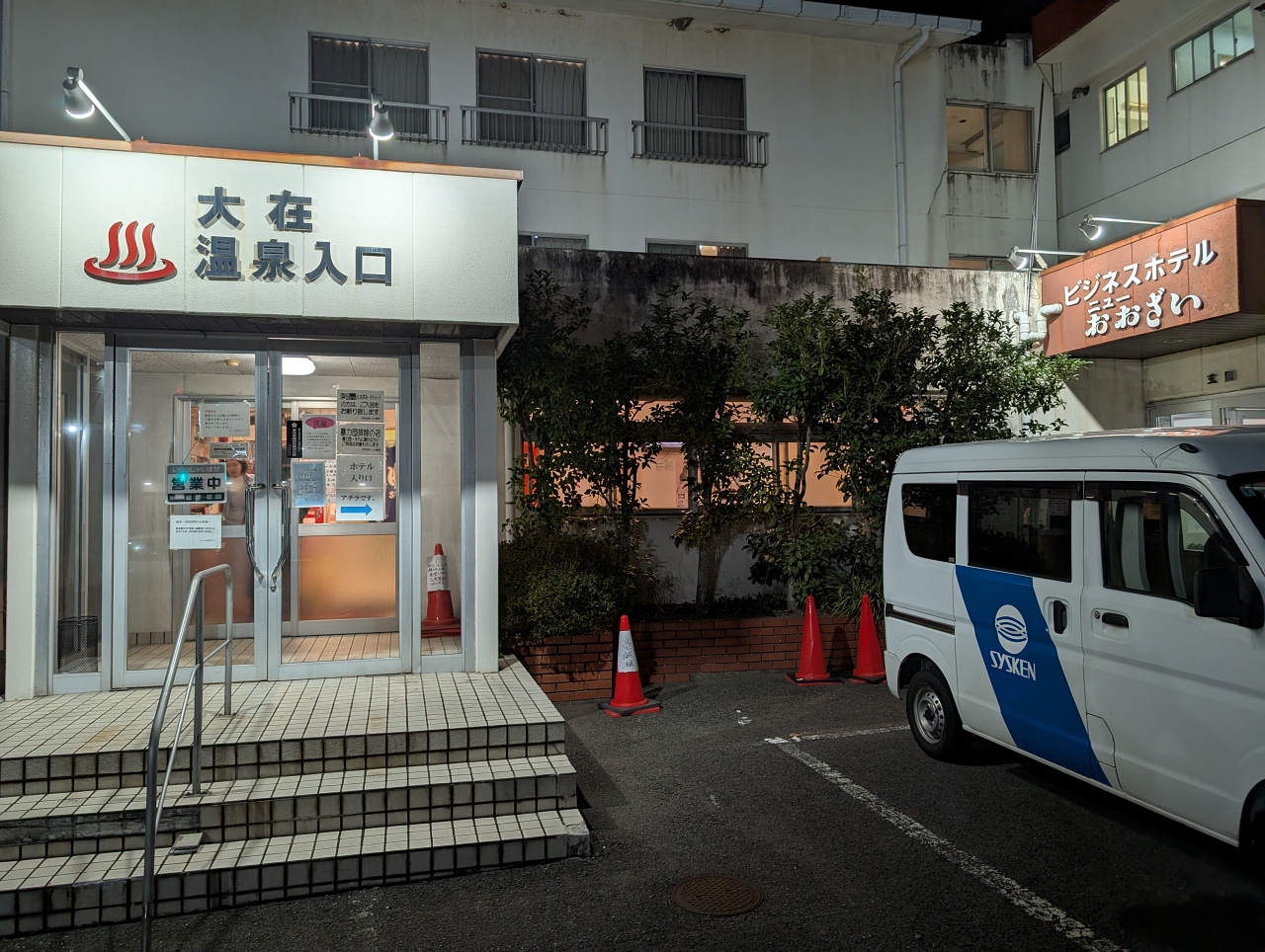 ビジネスホテルっていうより合宿所に近いかな。建物は古いけど清掃は行き届いていました。ここは温泉も併設していて、ホテル利用者はもちろん入浴OKです。
