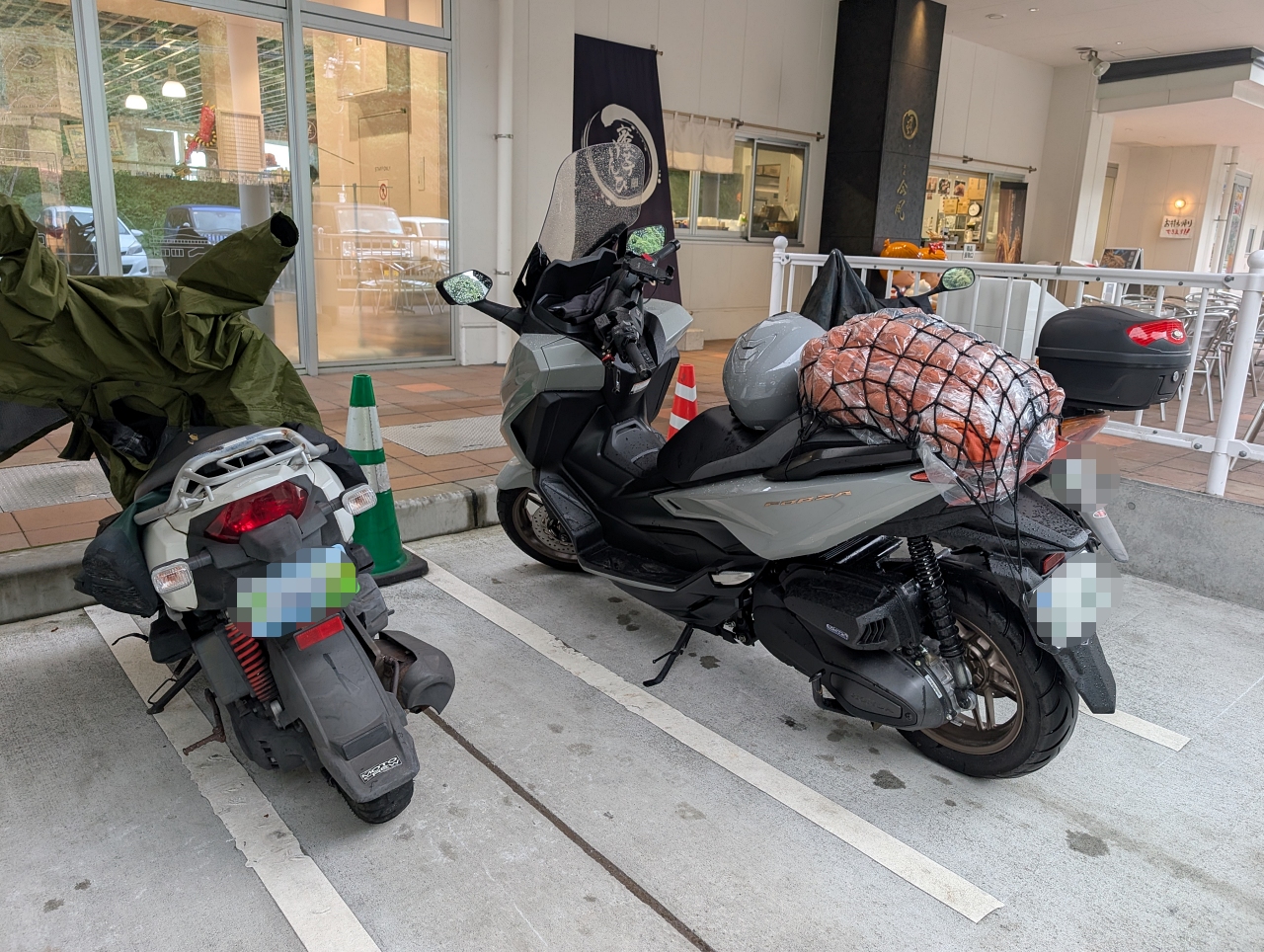 平日の雨降りってことで駐車場はガラガラ。バイクなんて1台も停まっていない。そこにポツンと1台停めました。バイクの駐輪代は200円です。ヘルメットは受付で預かってくれました😀