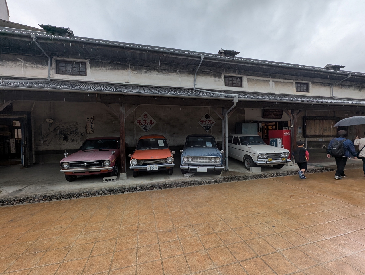 建物の外へ出てきました。こちらにも旧車がずらり並んでいました。これ、西部警察でよく潰した車ちゃうん?