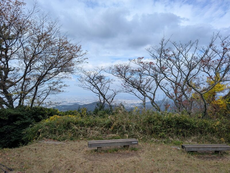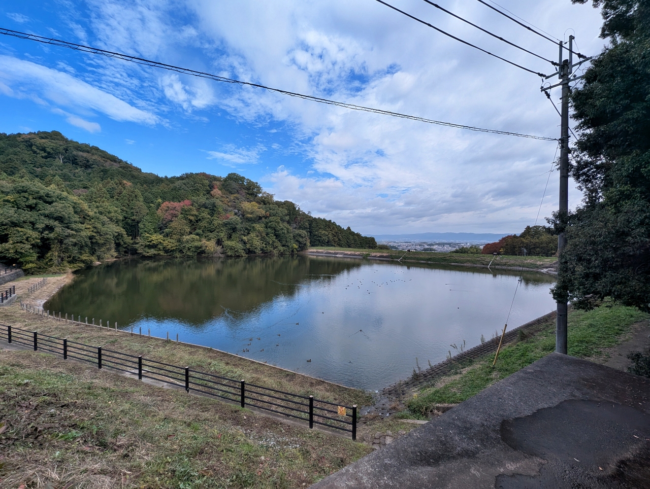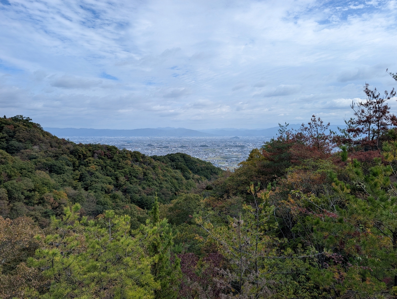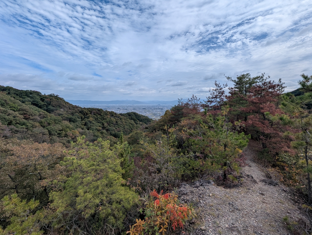 大池から奈良市街が少し見えます。低山の紅葉はまだ先ですね。