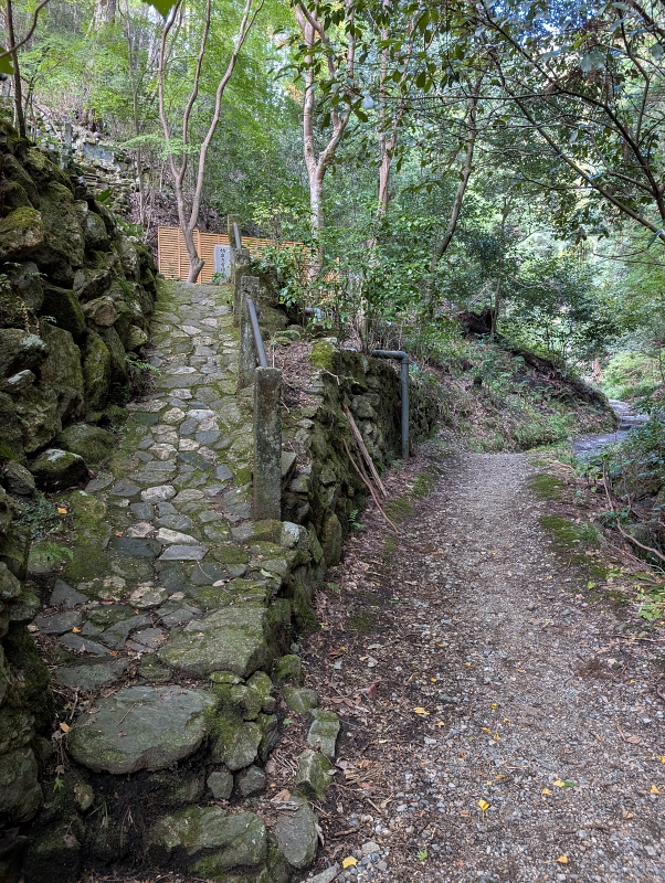コンクリートの道を登って行くと、大岩への取りつき(右)を通過して更に奥へと歩いて行きます。