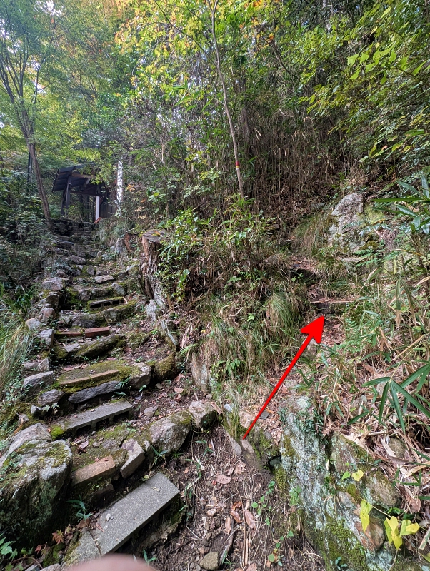 祐泉寺尾根は山門をくぐってすぐのこの石畳の方(左)へ登って行くみたいだ。