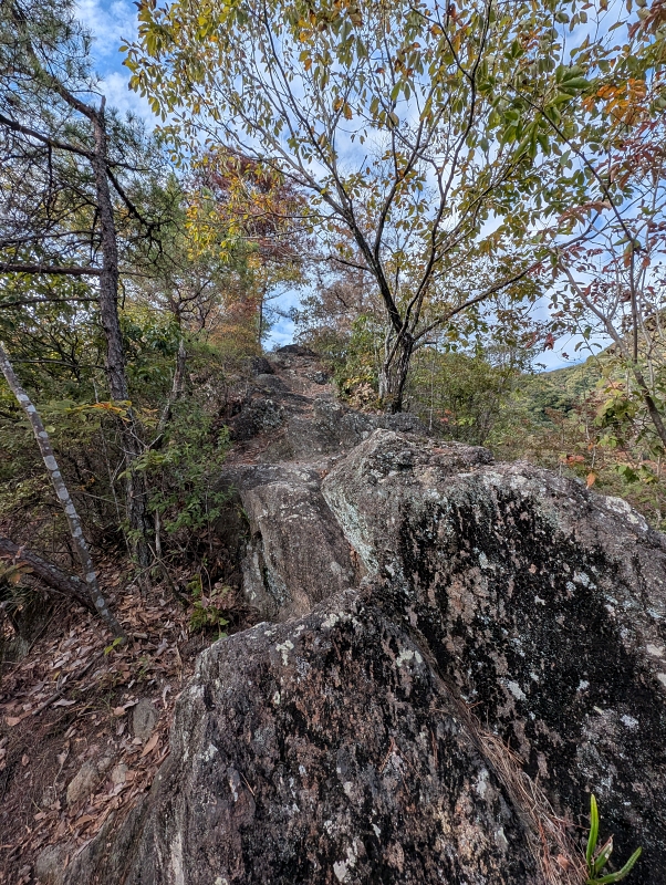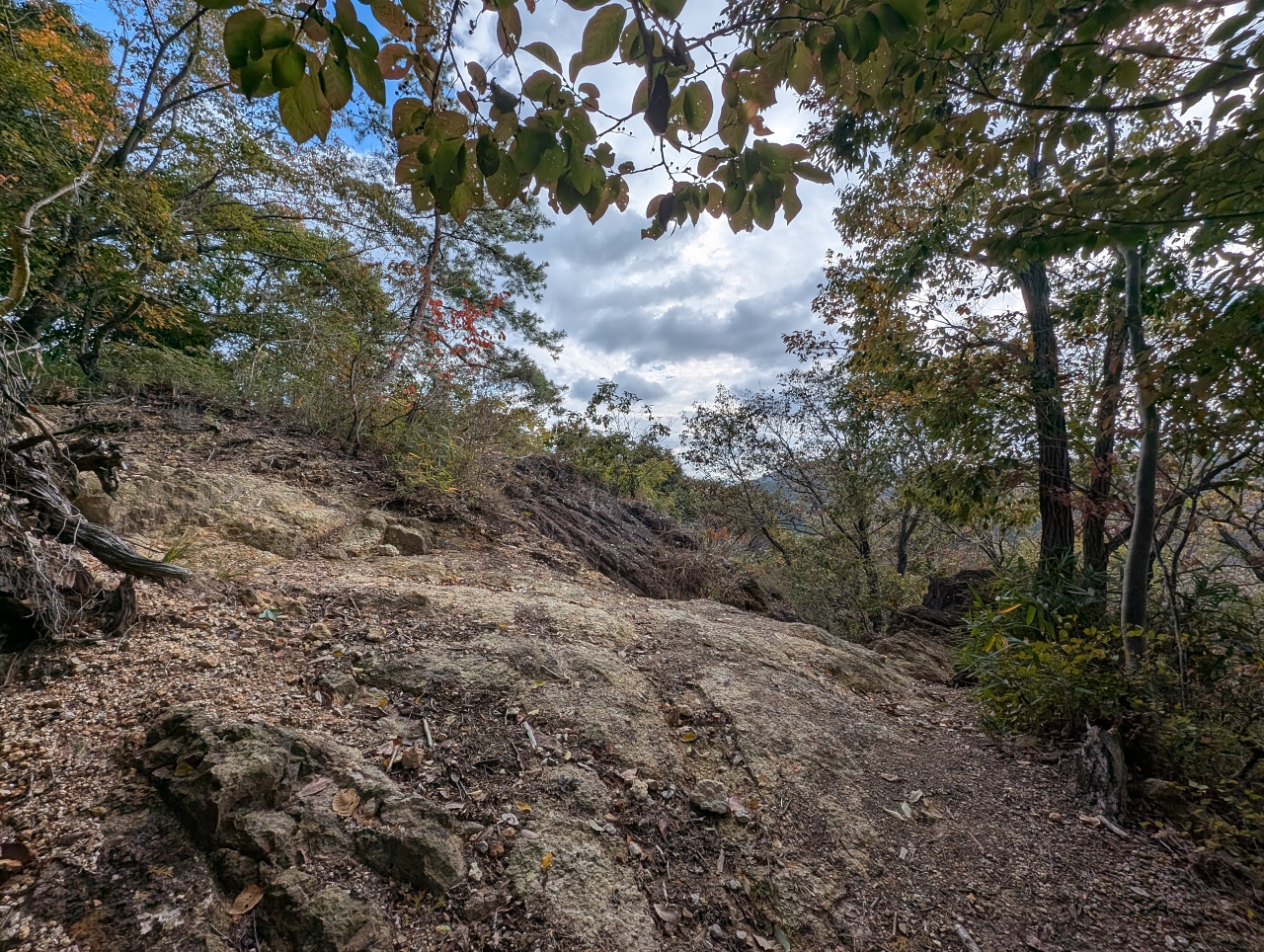正面にはこれから登る雌岳も見える。大阪側から登るルートだと一旦ダイトレに出て、ダイトレを少し歩いて山頂に登るって感じのルートが多いけど、ここ祐泉寺尾根はダイレクトに山頂へ出るのでオモシロイ。