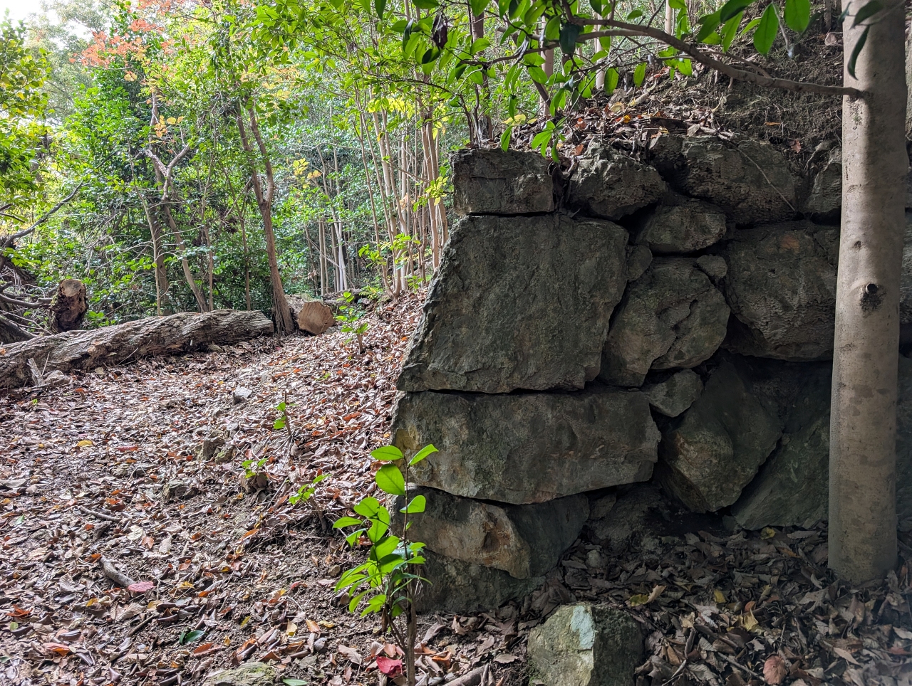 こんな場所に立派な石垣があった。ルートは木が伐採してあったりと結構手入れされている。ただテープや道標は無いけど、踏み跡はしっかりあるので迷うことはない。