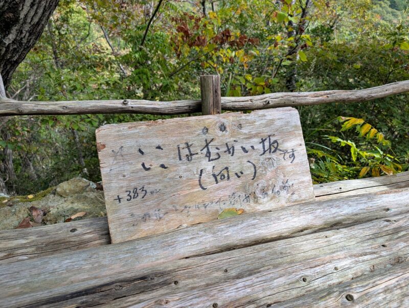 背もたれつきの立派なベンチがあったので、少し座って休憩させていただきました。っていうか、このルートは初めて二上山を歩いたコースでした。その時はこの「むかい坂」って場所は無かった記憶が。
