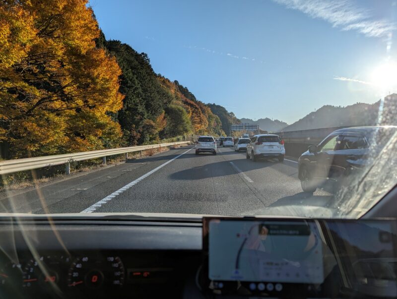 名神と合流しても渋滞は続いている。まぁ、紅葉が綺麗なので渋滞も苦にならなかったけど。