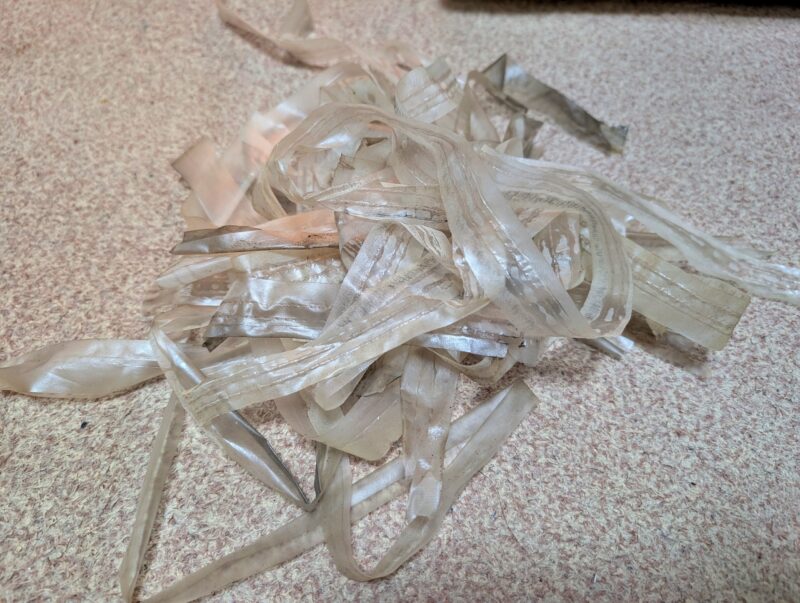 これは山用テントのシームテープ。これだけボロボロになっていると、剥がすのも一苦労。諦めて安いテントを購入しました。