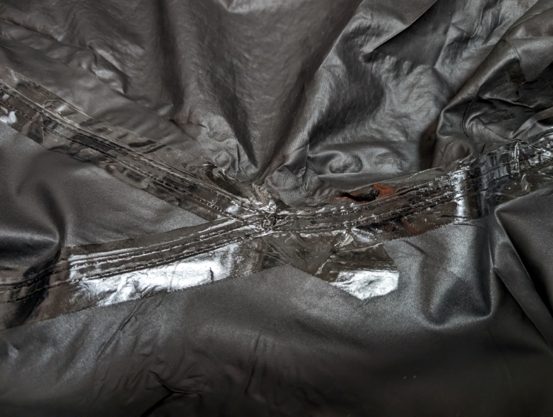 ただ、購入して1年未満でシームテープが徐々に剥がれてきて雨降りの後は若干シートが濡れていました。破れ、変色なども無いので買い替えるには勿体ない。って事で面倒ですが、シームテープを貼り替えました。
