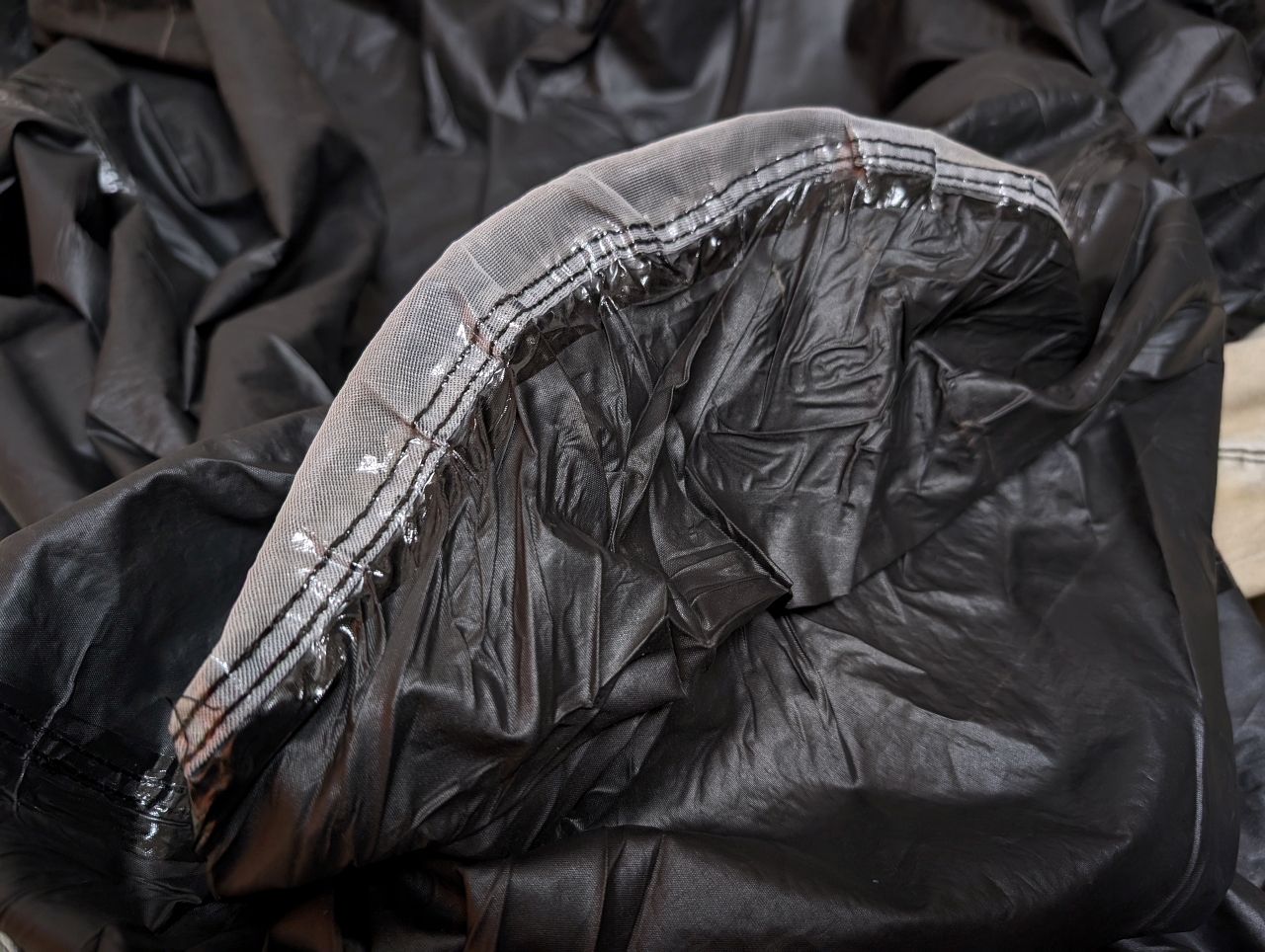 ただ、購入して1年未満でシームテープが徐々に剥がれてきて雨降りの後は若干シートが濡れていました。破れ、変色なども無いので買い替えるには勿体ない。って事で面倒ですが、シームテープを貼り替えました。